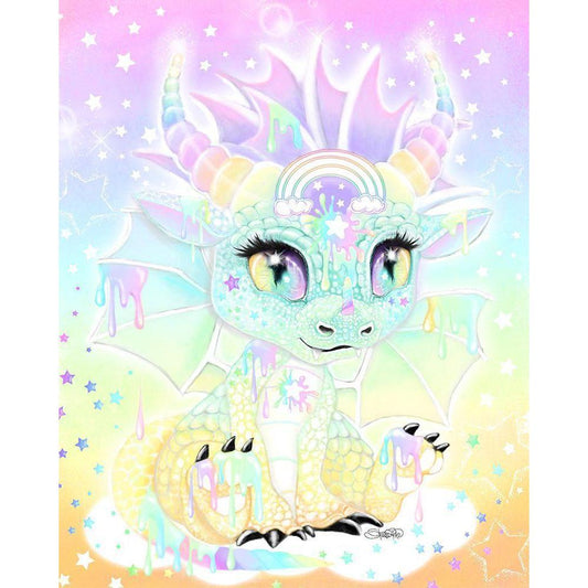 Sweet Pastel Lil Dragonz Black Modern Wood Framed Art Print by Sheena Pike Art