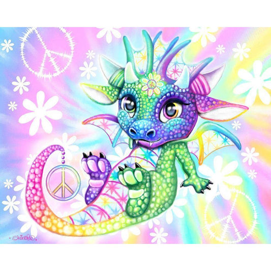 Peaceful Tie Dye Lil Dragonz Black Modern Wood Framed Art Print by Sheena Pike Art