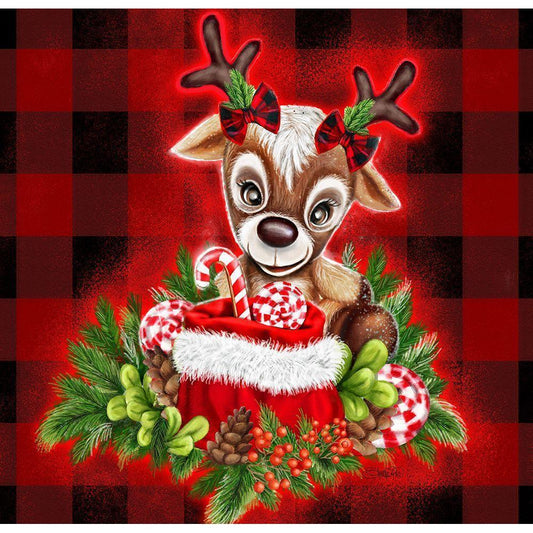 Christmas Cutie Reindeer Black Modern Wood Framed Art Print by Sheena Pike Art