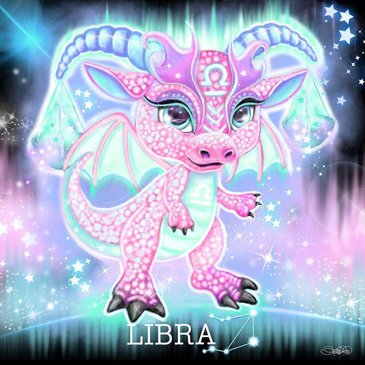 Zodiac Lil Dragonz Libra Black Modern Wood Framed Art Print by Sheena Pike Art
