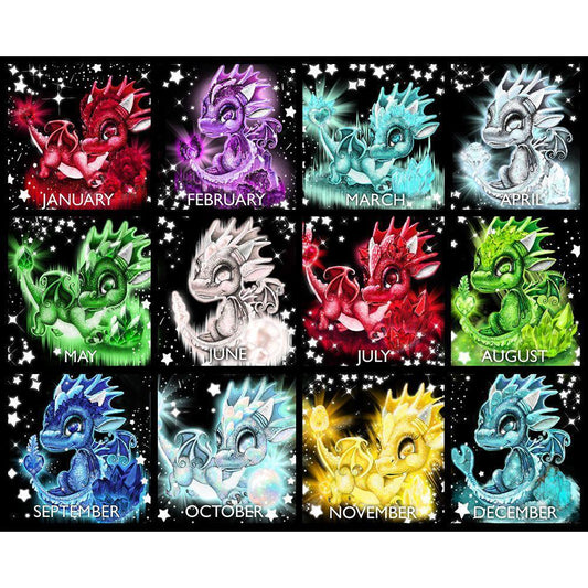 Lil Dragonz Birthstones Black Modern Wood Framed Art Print by Sheena Pike Art