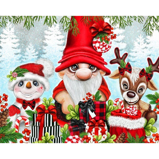 Christmas Gnome and Friends Black Modern Wood Framed Art Print by Sheena Pike Art