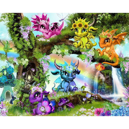 Enchanted Tree - Lil DragonZ Black Modern Wood Framed Art Print by Sheena Pike Art