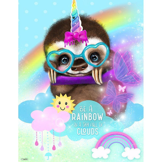 Be a Rainbow SlothiCorn Black Modern Wood Framed Art Print by Sheena Pike Art