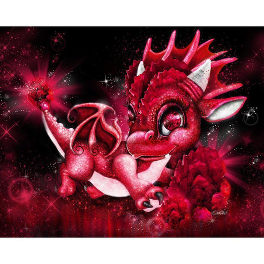 July - Ruby - Birthstone Lil Dragonz Black Modern Wood Framed Art Print by Sheena Pike Art
