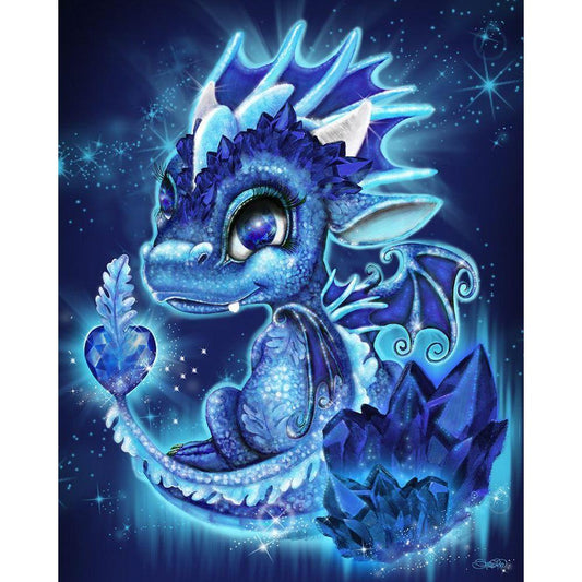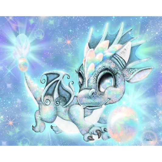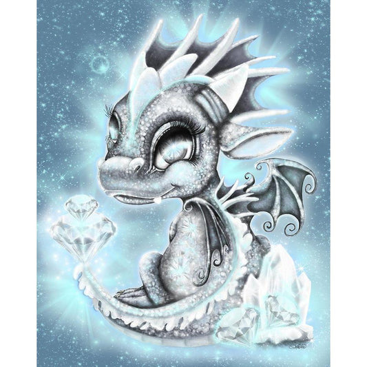 April - Diamond - Birthstone Lil Dragonz Black Modern Wood Framed Art Print by Sheena Pike Art