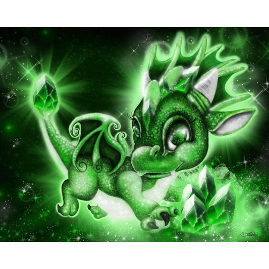 May - Emerald - Birthstone Lil Dragonz Black Modern Wood Framed Art Print by Sheena Pike Art
