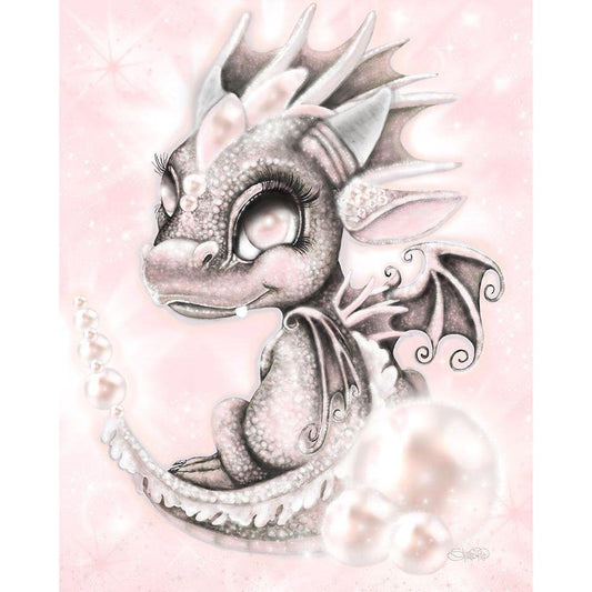 June - Pearl - Birthstone Lil Dragonz Black Modern Wood Framed Art Print by Sheena Pike Art