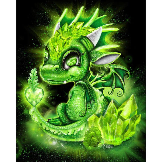 August - Peridot - Birthstone Lil Dragonz Black Modern Wood Framed Art Print by Sheena Pike Art