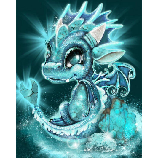 December - Turqouise - Birthstone Lil Dragonz Black Modern Wood Framed Art Print by Sheena Pike Art