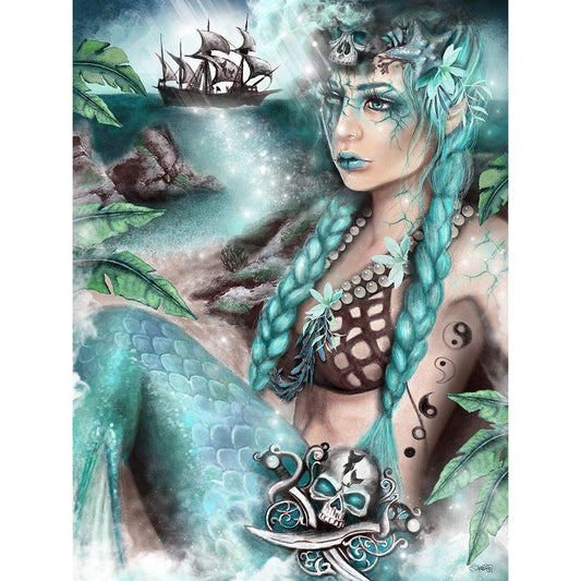 Nightshade - Malevolent Mermaids Black Modern Wood Framed Art Print by Sheena Pike Art