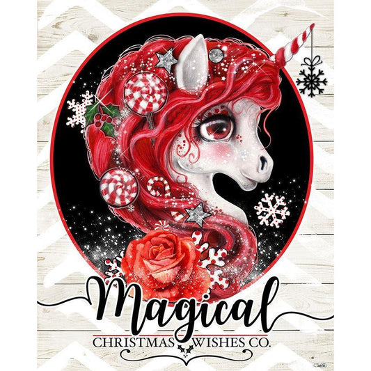 Magical Christmas Wishes Peppermint Unicorn Black Modern Wood Framed Art Print by Sheena Pike Art