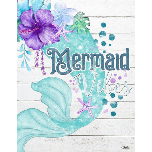 Mermaid Vibes Black Modern Wood Framed Art Print by Sheena Pike Art