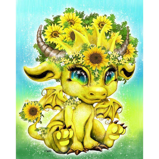 Sunflower - Lil DragonZ Black Modern Wood Framed Art Print by Sheena Pike Art