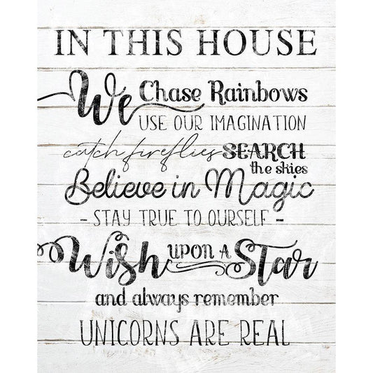 In This House Unicorns Are Real Black Modern Wood Framed Art Print by Sheena Pike Art