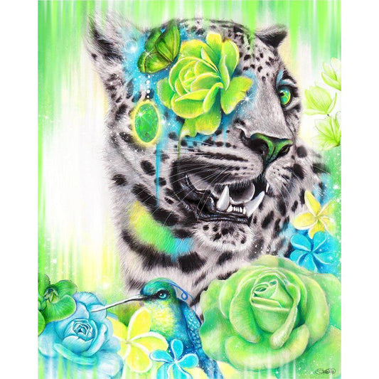 AquaLime Leopard Black Modern Wood Framed Art Print by Sheena Pike Art