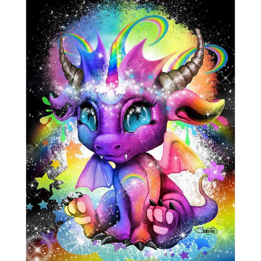 Rainbowcorn - Lil DragonZ Black Modern Wood Framed Art Print by Sheena Pike Art