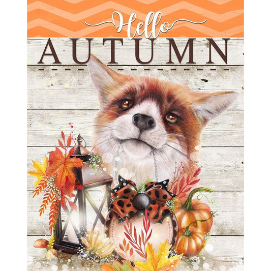 Hello Autumn - Autumn Greetings Fox Black Modern Wood Framed Art Print by Sheena Pike Art