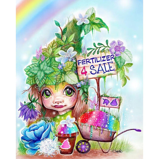Gracie the Gardener MunchkinZ Elf Black Modern Wood Framed Art Print by Sheena Pike Art