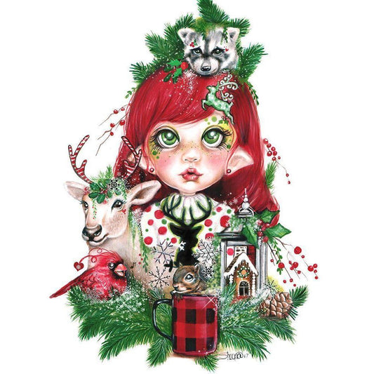 Cozy Christmas Claire - MunchkinZ Elf Black Modern Wood Framed Art Print by Sheena Pike Art