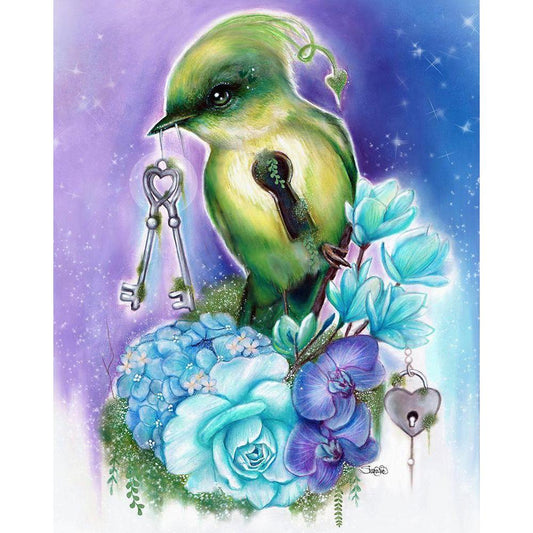 You Hold the Key Love Birds Collection Black Modern Wood Framed Art Print by Sheena Pike Art