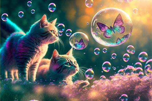 Magic Cat Black Modern Wood Framed Art Print by Randy Noble Fine Art