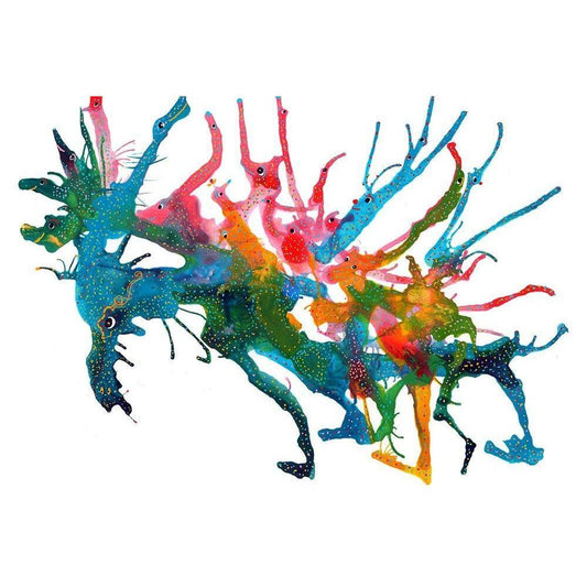 Acrylic Painting Colorful Rain Black Modern Wood Framed Art Print by Jenny Rainbow Fine Art