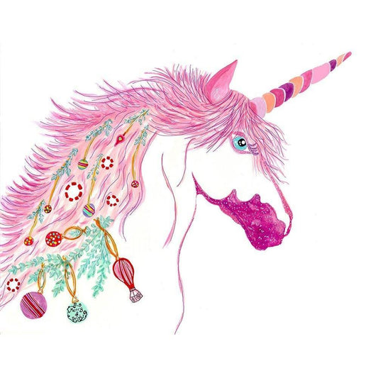 Christmas Unicorn Black Modern Wood Framed Art Print by Kwerki Studios