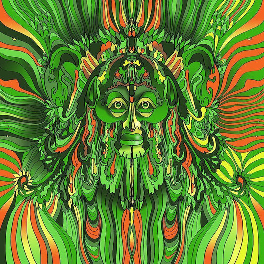 Pop Art Leaf Face Black Modern Wood Framed Art Print by Green, Howie