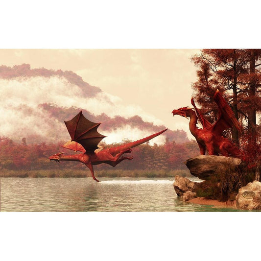 Autumn Dragons Black Modern Wood Framed Art Print by Eskridge, Daniel