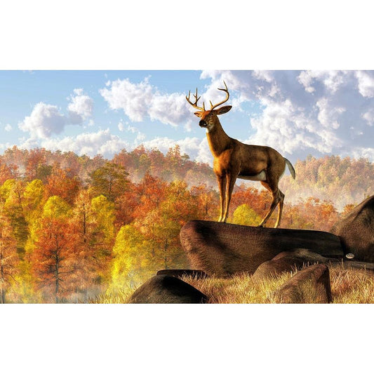 Buck Over Autumn Valley Black Modern Wood Framed Art Print by Eskridge, Daniel