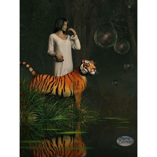 Dreams Of Tigers And Bubbles Black Modern Wood Framed Art Print by Eskridge, Daniel