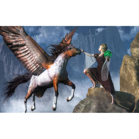 Elf Summoning A Pegasus Black Modern Wood Framed Art Print by Eskridge, Daniel