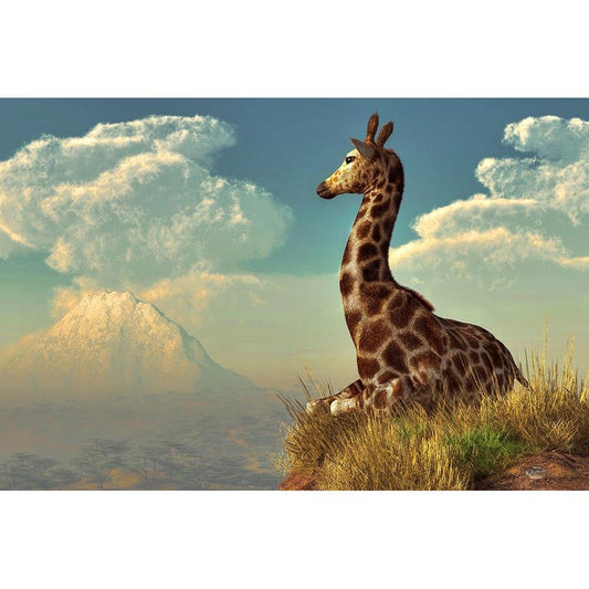 Giraffe And Distant Mountain Black Modern Wood Framed Art Print by Eskridge, Daniel