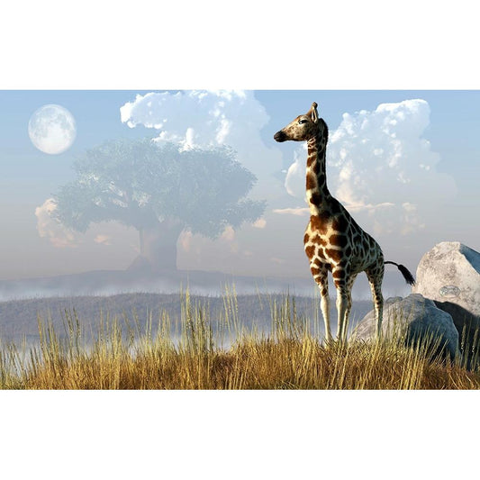 Giraffe And Giant Tree Black Modern Wood Framed Art Print by Eskridge, Daniel