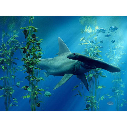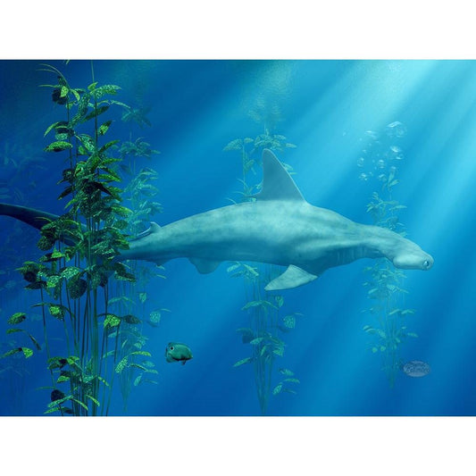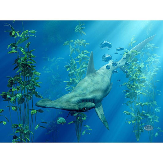 Hammer Head Among The Seaweed Black Modern Wood Framed Art Print by Eskridge, Daniel