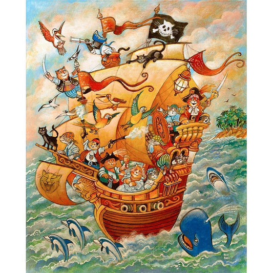 Cats of Caribian Black Modern Wood Framed Art Print by Bell, Bill