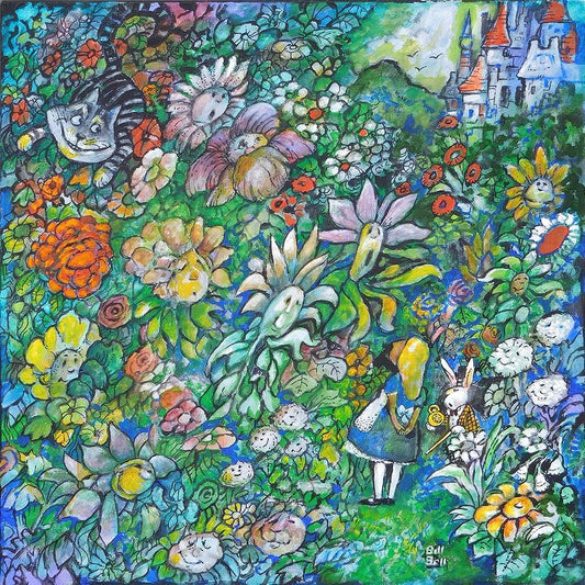 In the Wonderland Garden Black Modern Wood Framed Art Print by Bell, Bill