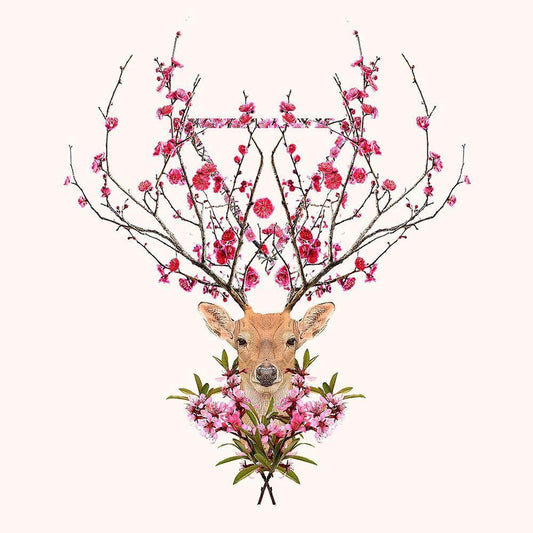 Spring Deer White Modern Wood Framed Art Print with Double Matting by Farkas, Robert