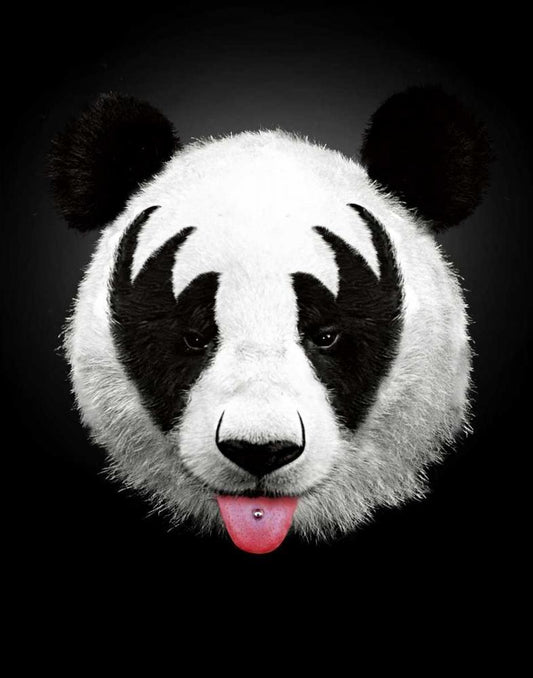 Panda Rocks White Modern Wood Framed Art Print with Double Matting by Farkas, Robert