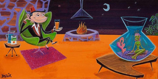 Tang Time White Modern Wood Framed Art Print with Double Matting by Beatnik (Graeme Mckim)