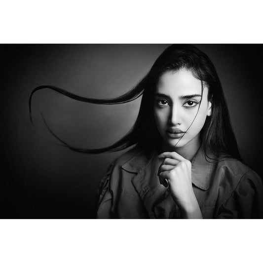 Hair Dance Black Modern Wood Framed Art Print with Double Matting by Heydari, Amir