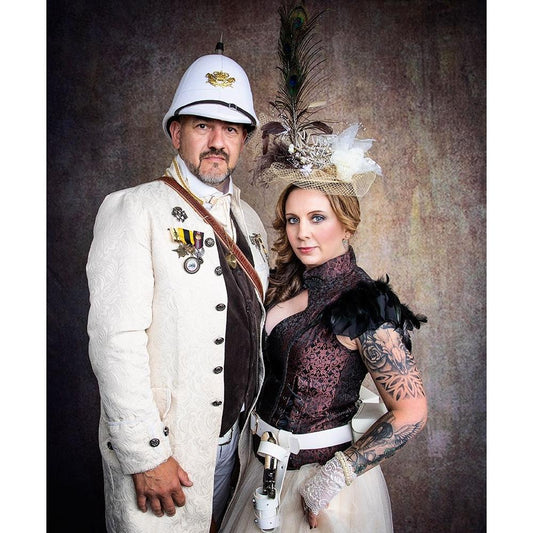 Steampunk Wars - The Diplomat With Wife Black Modern Wood Framed Art Print with Double Matting by Springgay, Daniel