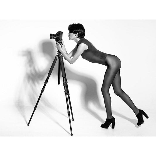 Curious Lady Black Modern Wood Framed Art Print with Double Matting by Tejada, Cesar