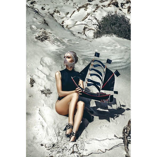 In Her Mind Black Modern Wood Framed Art Print with Double Matting by Nahoum, Avi