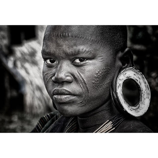 Surmi Woman - Ethiopia Black Modern Wood Framed Art Print with Double Matting by Inazio Kuesta, Joxe