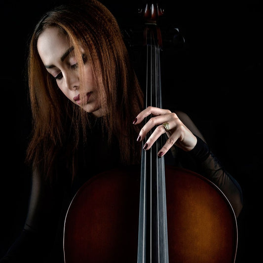 Cellist White Modern Wood Framed Art Print with Double Matting by Arabzadeh, Abbas