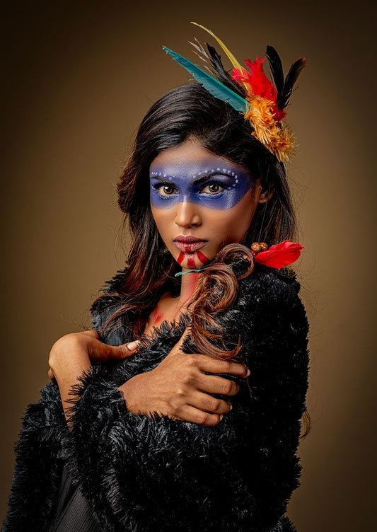 Mexican Tribe Beauty White Modern Wood Framed Art Print with Double Matting by Chattopadhyay, Debasish