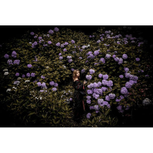Ajisai Black Modern Wood Framed Art Print with Double Matting by Koiki