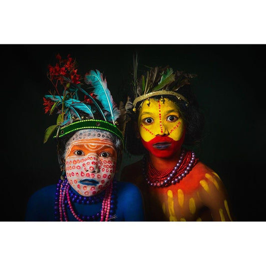 Tribal Duo Black Modern Wood Framed Art Print with Double Matting by Banerjee, Nilendu